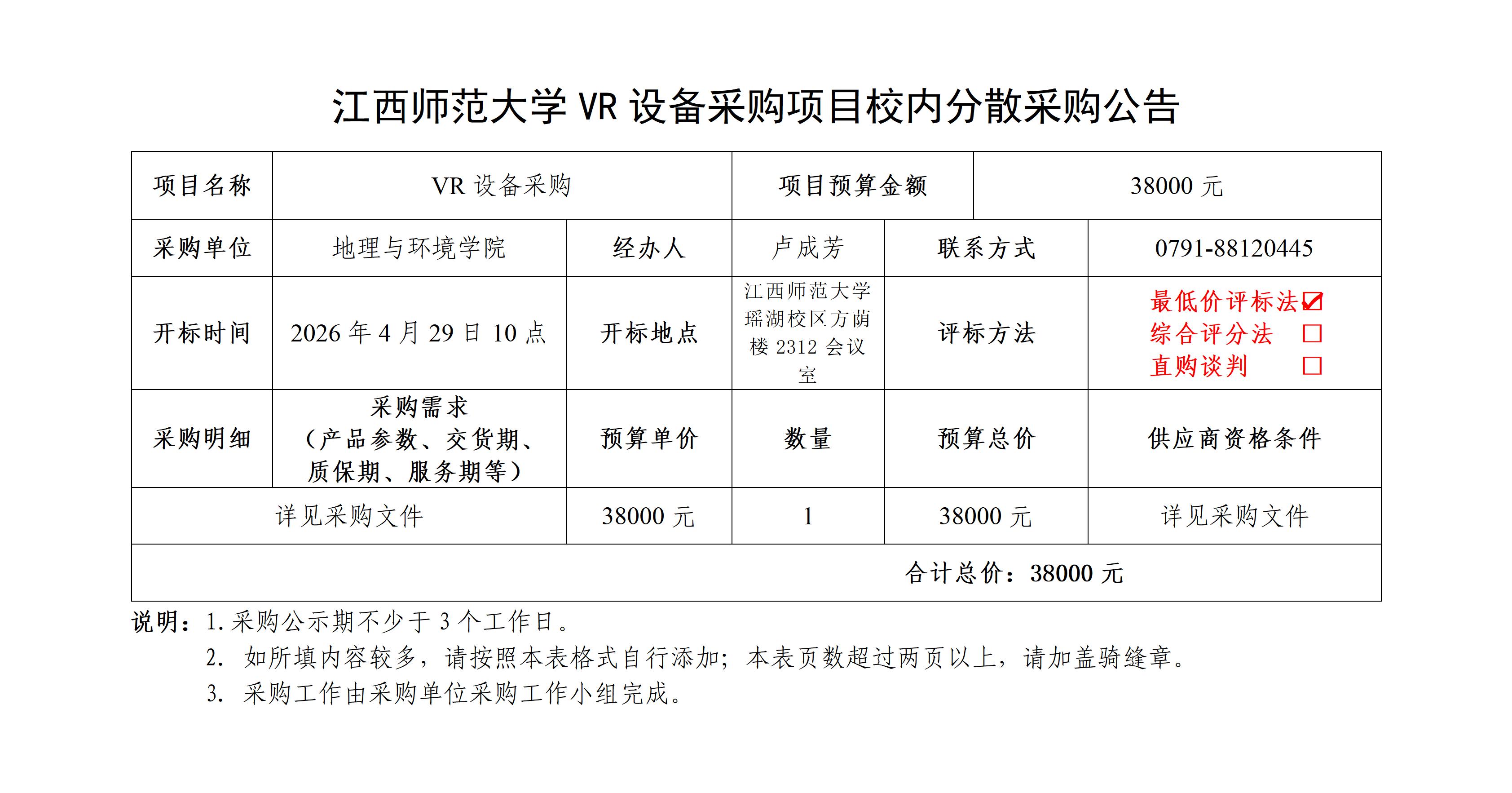 江西师范大学VR设备采购项目校内分散采购公告